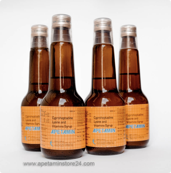 Apetamin ist ein Vitamin-Sirup mit wertvollen Nährstoffen, die zur Gewichtszunahme beitragen können. Seine aktiven Komponenten sind Cyproheptadin und Lysin – Cyproheptadin hemmt die Wirkung von Histamin, während Lysin das Immunsystem stärkt.